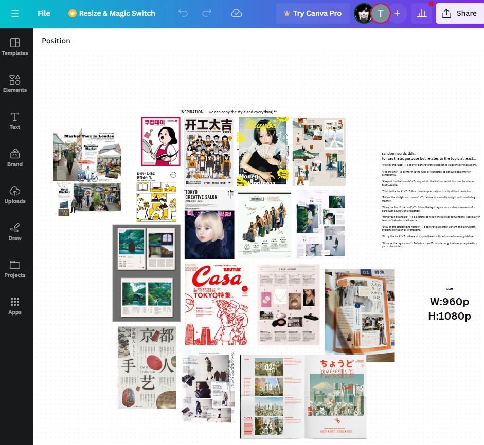 Then, we created a mood board in canva before starting our design on the guide book.